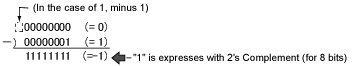 Negative numbers are expressed by "Inverting all bits of a positive number and adding 1 to the result".