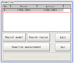 Calibration parameters are calculated automatically when a registered model is searched and the actual coordinates for that position entered.