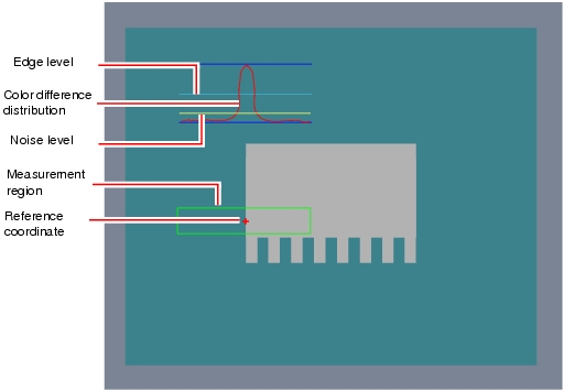 The maximum and minimum values of color differences in the edge detection region are obtained and, if the difference is lower than the noise level, no edges will be detected. If the detection is affected by noise, increase this value.
