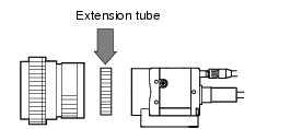 If the field of view of measurement object is 40 mm, and a 3Z4S-LEML-5018 lens is used, the camera setting distance is set at 500 mm, and a 5 mm extension tube is required.